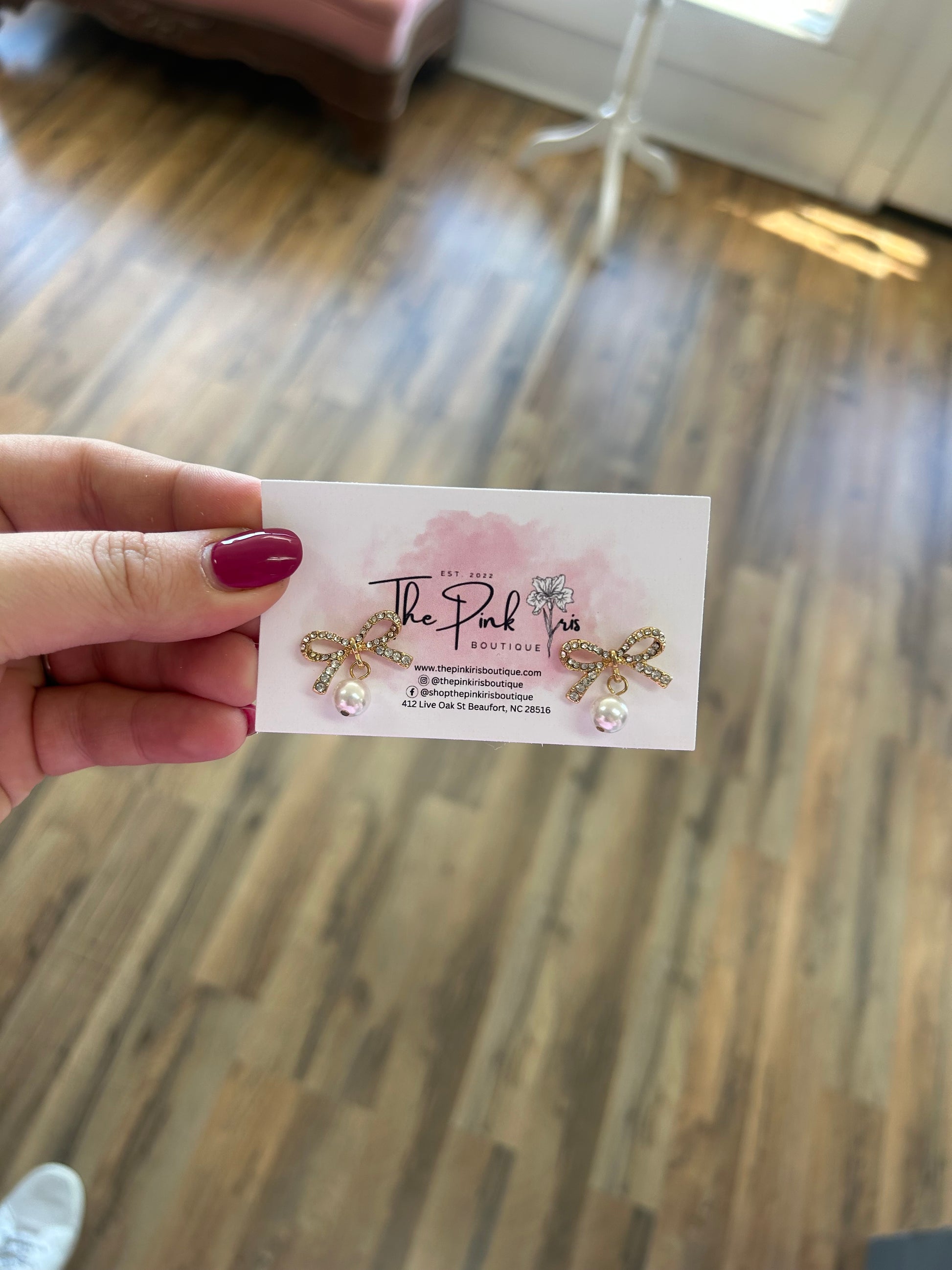 Pave Bow & Pearl Dangle Earrings