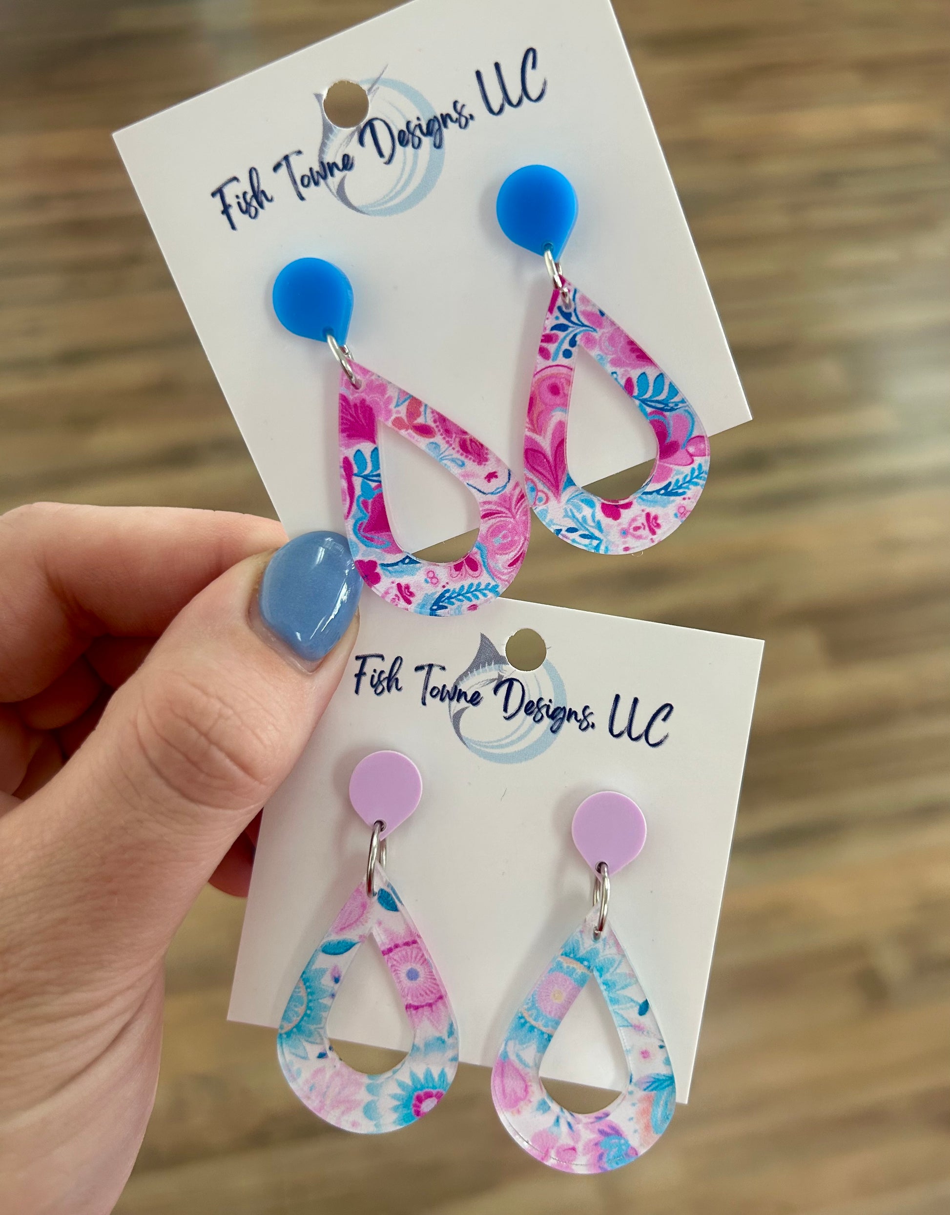 Pink & Blue Teardrop Earrings